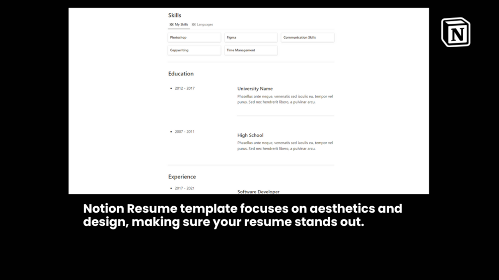 Introducing the Notion resume template - the perfect solution for anyone looking to create a professional and visually appealing resume.