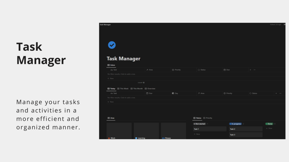 Organize your tasks and projects using this very simple and free Notion Task Manager!