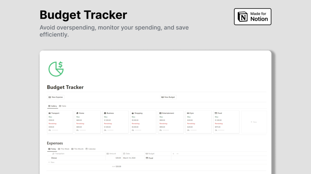 Make smart financial decisions with the Notion Budget Tracker.
